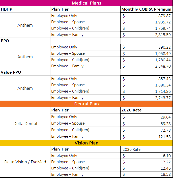 COBRA requires continuation coverage to be offered to covered employees, their spouses, former spouses, and dependent children when group health coverage would otherwise be lost due to certain specific events.